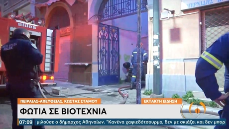 04.02.22 07:28Πειραιάς: Φωτιά σε βιοτεχνία - Εντοπίστηκε άνδας χωρίς τις αισθήσεις του Το κτήριο βρίσκεται επί της οδό Ελευθερίου Βενιζέλου στο κέντρο του Πειραιά. Στο σημείο έσπευσαν...