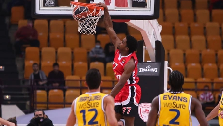 19.11.21 22:59Euroleague: «Σίφουνας» Ολυμπιακός παρέσυρε (90-73) την Μακάμπι Σε έναν αγώνα παράσταση για ένα ρόλο, ο Ολυμπιακός εμφάνισε την... γνωστή καλή του εικόνα στο ΣΕΦ...