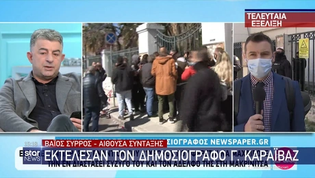 09.04.21 17:05«Μας έχει σοκάρει»: Συγκλονισμένοι οι δημοσιογράφοι του STAR την ώρα του ρεπορτάζ για τη δολοφονία Καραϊβάζ Η είδηση της δολοφονίας του Γιώργου Καραϊβάζ έπεσε σαν «βόμβα» στον «αέρα» του μεσημεριανού δελτίου...