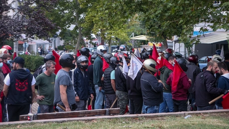 29.09.21 19:30Θεσσαλονίκη: 19 προσαγωγές απο τα επεισόδια κοντά στο ΕΠΑΛ - Ανθρωποκυνηγητό από την Αστυνομία Νέος πετροπόλεμος και χημικά στο ΕΠΑΛ Σταυρούπολης - Έγιναν 19 προσαγωγές - Πέταξαν πέτρες, πυρσούς...