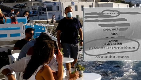 30.07.22 10:05Μύκονος: Αφησαν φιλοδώρημα 3.000 ευρώ - Εκαναν λογαριασμό 20.000 Ολoένα και σφίγγει ο ελεγκτικός κλοιός της Ανεξάρτητης Αρχής Δημοσίων Εσόδων στις τουριστικές...