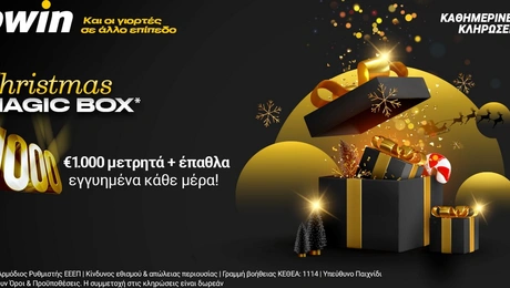 17.12.21 17:01bwin: €1.000 μετρητά εγγυημένα κάθε μέρα στο "Christmas Magic Box*" H πιο μαγική εποχή του χρόνου χώρεσε σε ένα κουτί! Το "Christmas Magic Box" έφτασε με εγγυημένα...