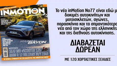 30.07.21 16:27Στον αέρα το καλοκαιρινό τεύχος του inMotion 77 Δοκιμές αυτοκινήτων και μοτοσικλετών, παρουσιάσεις όλων των νέων μοντέλων, ανασκόπηση F1 και...