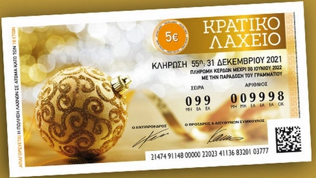 27.07.21 18:35Στις 29 Ιουλίου η πρώτη κλήρωση της νέας έκδοσης του Εθνικού Λαχείου Μοιράζει 1.000.000 ευρώ στον Μεγάλο Λαχνό και πολλά ενδιάμεσα έπαθλα έως 100.000 ευρώ