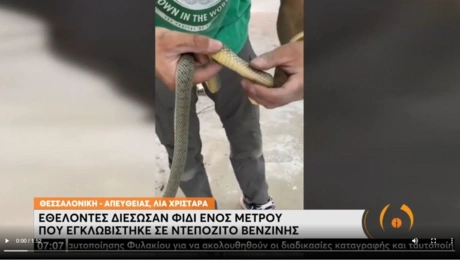 16.08.22 09:54Θεσσαλονίκη: Φίδι ενός μέτρου εγκλωβίστηκε μέσα σε ντεπόζιτο βενζίνης αυτοκινήτου Φίδι ενός μέτρου εντοπίστηκε σε ντεπόζιτο βενζίνης αυτοκινήτου και ο οδηγός ειδοποίησε μέλη της...