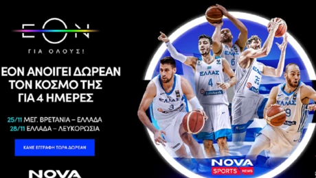 25.11.21 12:54O κόσμος της ΕΟΝ και η Εθνική μπάσκετ δωρεάν για 4 ημέρες για όλους! Η Nova ανοίγει τον κόσμο της ΕΟΝ σε όλους από την Πέμπτη 25 Νοεμβρίου και για 4 ολόκληρες ημέρες...