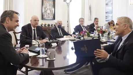 05.04.22 20:13Με τον Ισραηλινό ΥΠΕΞ συναντήθηκε ο Μητσοτάκης - Η ατάκα του Yair Lapid για τις σχέσεις Ισραήλ - Τουρκίας Με τον Αναπληρωτή Πρωθυπουργό και Υπουργό Εξωτερικών του Ισραήλ, Yair Lapid, συναντήθηκε ο Ελληνας...
