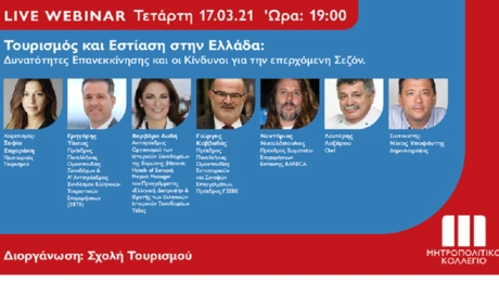 12.03.21 12:37Live Webinar για την Επανεκκίνηση του Τουρισμού και της Εστίασης από το Μητροπολιτικό Κολλέγιο Tο Μητροπολιτικό Κολλέγιο διοργανώνει, την Τετάρτη 17 Μαρτίου στις 19:00, μία άκρως επίκαιρη...
