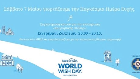 04.05.22 17:13 Στο σιντριβάνι του Ζαππείου ο ανοιχτός εορτασμός της Παγκόσμιας Ημέρας Ευχής Το Make-A-Wish (Κάνε-Μια-Ευχή Ελλάδος) γιορτάζει την Παγκόσμια Ημέρα Ευχής στις 7 Μαΐου 2022 με τη...
