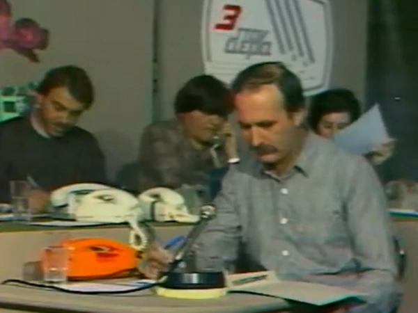 Σεμίνα Διγενή, Νάσος Αθανασίου, Γιάννης Δημαράς και Γιώργος Παπαδάκης σε ρόλο μαέστρου/τροχονόμου/συντονιστή των ρεπορτάζ, των τηλεφωνικών κλήσεων που έβγαιναν στον αέρα και ένα σωρό άλλων πραγμάτων που συνέβαιναν στην αναλογική, 80ς εποχή της ελληνικής τηλεόρασης. Υπέροχη εκπομπή, ιστορικό ντοκουμέντο και εγχειρίδιο για το πώς βγαίνει το ρεπορτάζ με χαρτί, μολύβι (ή στυλό) κι ένα τηλέφωνο, τίποτα περισσότερο, τίποτα λιγότερο.