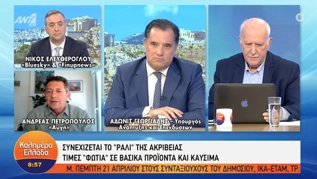 04.04.22 13:39 ΠΟΛΙΤΙΚΗΟικονόμου: Μείωση ΦΠΑ κόντρα στις ανατιμήσεις εξετάζει η κυβέρνηση - Τι είπε για την επιδότηση καυσίμων