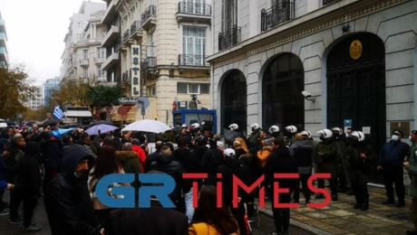 09.01.22 17:27 ΕΛΛΑΔΑΘεσσαλονίκη: Πορεία ανεμβολίαστων υπέρ Τζόκοβιτς - Συνθήματα έξω από το προξενείο της Σερβίας