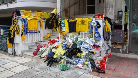 09.02.22 14:17 ΕΛΛΑΔΑΣτο δωμάτιο του Άλκη Καμπανού μέρος από τα αφιερώματα που συγκεντρώθηκαν στο σημείο της δολοφονίας