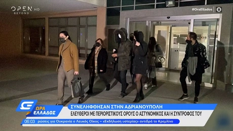 06.12.21 23:29ΕΛΛΑΔΑΠροσωρινά ελεύθεροι, ο αστυνομικός και η κοπέλα του που συνελήφθησαν στην Τουρκία Ο αστυνομικός και η κοπέλα του που συνελήφθησαν στην Ανδριανούπολη αφέθησαν ελεύθεροι και θα...