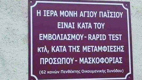 08.07.21 13:29 ΕΛΛΑΔΑΡόδος: Σάλος με πινακίδα κατά των εμβολιασμών και των μέτρων προστασίας - Δικογραφία στον ιερό ναό