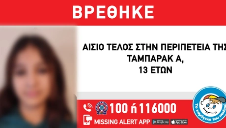 03.12.22 20:28 ΕΛΛΑΔΑMissing Alert: Εξαφανίστηκε 13χρονη από Μονάδα Κοινωνικής Φροντίδας στη Νέα Σμύρνη