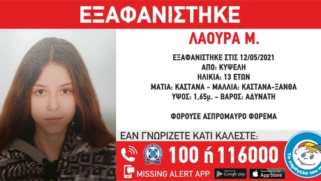 06.10.21 16:17 ΕΛΛΑΔΑΧαμόγελο του Παιδιού: Βρέθηκε η 15χρονη που είχε εξαφανιστεί στον Αγιο Παντελεήμονα