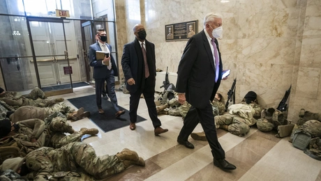 13.01.21 17:12 ΚΟΣΜΟΣΑπίστευτες εικόνες στο Καπιτώλιο: Στρατιώτες κοιμούνται στο πάτωμα με το όπλο παρά πόδα!