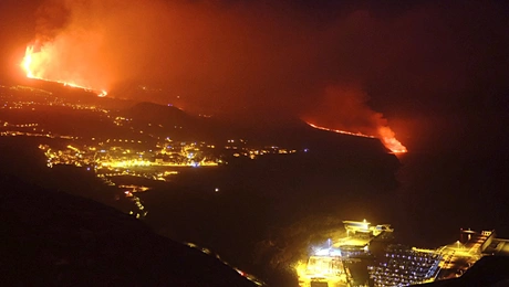 12.10.21 01:18 ΚΟΣΜΟΣΗ λάβα από το ηφαίστειο Κούμπρε Βιέχα κατατρώει εργοστάσιο τσιμέντου στο νησί Λα Πάλμα