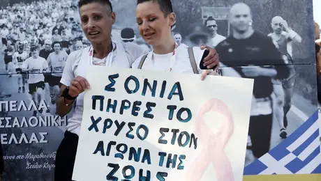 21.11.21 12:27 ΕΛΛΑΔΑΘεσσαλονίκη: Συγκίνηση για την αθλήτρια που παλεύει με τον καρκίνο και τερμάτισε πρώτη στον Μαραθώνιο