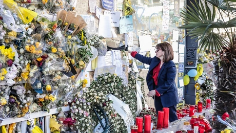 18.02.22 17:11 ΕΛΛΑΔΑΗ Κατερίνα Σακελλαροπούλου άφησε ένα λουλούδι στο σημείο που δολοφονήθηκε ο Αλκης Καμπανός