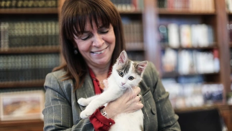 04.04.22 20:19 ΠΟΛΙΤΙΚΗΗ Κατερίνα Σακελλαροπούλου πόζαρε με τη γάτα της και πρότεινε υιοθεσίες κατοικιδίων για την Παγκόσμια Ημέρα Αδέσποτων