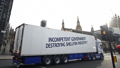 18.01.21 15:22 ΚΟΣΜΟΣΒρετανία: Πάρκαραν φορτηγά με θαλασσινά γύρω από την Ντάουνινγκ Στριτ και το Κοινοβούλιο σε διαμαρτυρία για το Brexit
