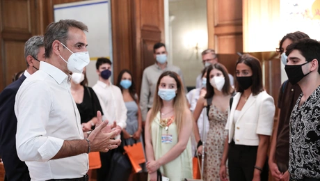 16.09.21 12:54 ΠΟΛΙΤΙΚΗΣυνάντηση Μητσοτάκη με νέους που διακρίθηκαν σε Πανευρωπαϊκούς Διαγωνισμούς Καινοτομίας: «Οι δικές σας εμπειρίες μας διευκολύνουν να σπάμε στερεότυπα»