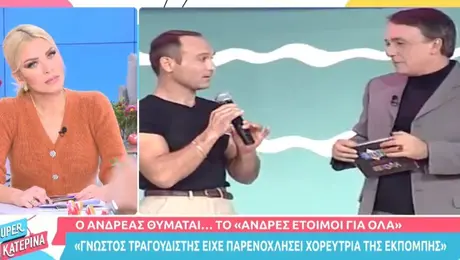 14.01.22 14:15 TV MEDIAΑνδρέας Μικρούτσικος: «Πολύ γνωστός τραγουδιστής προσπάθησε να βιάσει χορεύτρια στο Άντρες έτοιμοι για όλα»