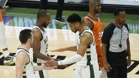 15.07.21 07:45 ΑΘΛΗΤΙΣΜΟΣNBA playoffs: Ισοφάρισαν οι Μπακς τους Σανς στους τελικούς με συγκλονιστικούς Αντετοκούνμπο, Μίντλετον