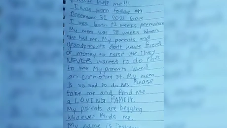 03.01.22 10:56 ΚΟΣΜΟΣTo σπαρακτικό σημείωμα μητέρας που εγκατέλειψε το μωρό της επειδή δεν μπορεί να το μεγαλώσει