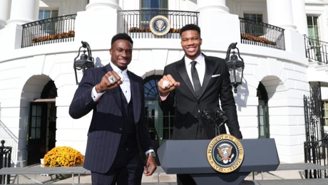 08.11.21 21:11 ΑΘΛΗΤΙΣΜΟΣΓιάννης Αντετοκούνμπο: «Πρόεδρος στην τοποθεσία Λευκός Οίκος» - Οι πρώτες φωτογραφίες από την βράβευση των πρωταθλητών του NBA