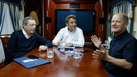 16.06.22 12:02 ΚΟΣΜΟΣΣειρήνες στο Κίεβο με την άφιξη Μακρόν, Ντράγκι και Σολτς - Θα συναντηθούν με τον Ζελένσκι