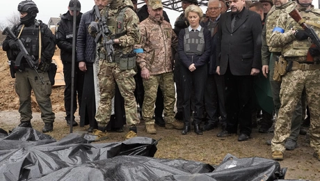 08.04.22 20:48 ΚΟΣΜΟΣΣυγκλονισμένη φορώντας αλεξίσφαιρο γιλέκο η Φον ντερ Λάιεν στη Μπούκα - Την υποδέχτηκε ο Ζελένσκι στο Κίεβο
