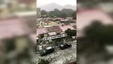 01.06.21 16:48 ΕΛΛΑΔΑΞάνθη: Ποτάμια οι δρόμοι από την ισχυρή καταιγίδα - Προβλήματα σε καλλιέργειες από χαλάζι