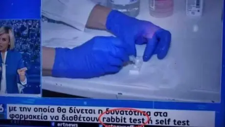 05.04.21 16:41ΕΛΛΑΔΑΟ Μόσιαλος τρολάρει επική γκάφα της ΕΡΤ: «Γρήγορο σαν κουνέλι» το... rabbit test! Με αφορμή μία ορθογραφική γκάφα της ΕΡΤ, ο Ηλίας Μόσιαλος προχώρησε σε μία ξεκαρδιστική ανάρτηση