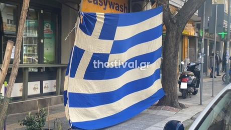 24.03.21 19:50 ΕΛΛΑΔΑΘεσσαλονίκη: Κρέμασαν τεράστια ελληνική σημαία απέναντι από το τουρκικό προξενείο