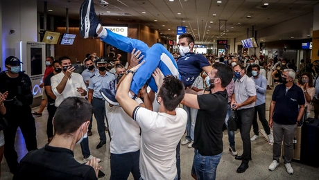 02.08.21 10:41 ΑΘΛΗΤΙΣΜΟΣΣτέφανος Ντούσκος: Αποθέωση για τον χρυσό Ολυμπιονίκη στο αεροδρόμιο - Τον σήκωσαν στα χέρια