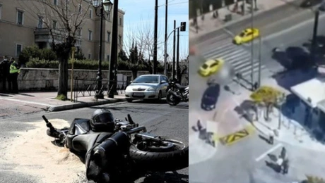 12.03.21 14:41 ΕΛΛΑΔΑΤροχαίο μπροστά στη Βουλή - Σφοδρή σύγκρουση υπηρεσιακού αυτοκινήτου με μοτοσικλέτα