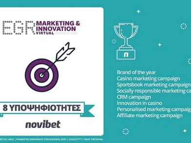Μετά τις πρόσφατες βραβεύσεις ως ‘Καλύτερη Στοιχηματική από Κινητό & App Διεθνώς’ στα SBC Awards, και για τη ‘Δημιουργία του Καλύτερου Προϊόντος Διεθνώς’ στα EGR Operator Awards, η Novibet βρίσκεται ακόμα μία φορά μεταξύ των κορυφαίων του κλάδου παγκοσμίως, αυτήν την φορά για το σχεδιασμό καινοτόμων marketing ενεργειών και την στρατηγική επένδυση στην ολιστική επικοινωνία του brand.
