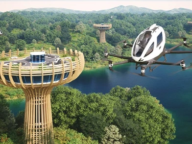 H εταιρεία Ehang παρουσίασε το πλάνο της για το Baobab, το νέο δενδρόσχημο πύργο που θα καταλήγει σε πλατφόρμα προσγείωσης των επιβατηγών drones της (EH216). Το σχεδιασμό του έχει αναλάβει το Giancarlo Zema Design Group (GZDG) και αποτελείται στο μεγαλύτερο μέρος τους από φωτοβολταϊκά πάνε που εξασφαλίζουν και την σχετική τροφοδοσία του με ενέργεια.