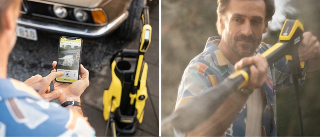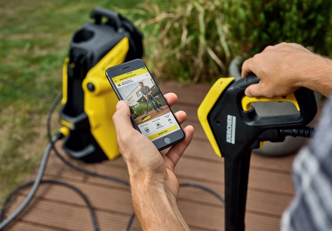 Τα νέα πλυστικά Κ Smart Control είναι τα πρώτα πλυστικά στον κόσμο που συνδέονται με το κινητό σου μέσω της πρωτοποριακής εφαρμογής Home & Garden app της Kärcher, κάνοντας έτσι τον καθαρισμό ευκολότερο και πιο αποτελεσματικό. Στην εφαρμογή υπάρχουν πρακτικές συμβουλές και οδηγίες για πολλές περιστάσεις και αντικείμενα καθαρισμού, ενώ μπορείς να δεις βήμα προς βήμα όλες τις πληροφορίες που χρειάζονται για τη διαδικασία, τη χρήση απορρυπαντικού, τη ρύθμιση πίεσης κλπ. Μάλιστα, στην εφαρμογή μπορείς να βρεις όλες τις λεπτομέρειες για το προϊόν, καθώς και συμβουλές συναρμολόγησης. Αυτό σημαίνει ότι κατεβάζοντας το Kärcher Home & Garden app μπορείς να συναρμολογείς, να ρυθμίζεις, ακόμα και να κάνεις service στο πλυστικό σου, real time, απλά και εύκολα, μέσα από το κινητό σου.