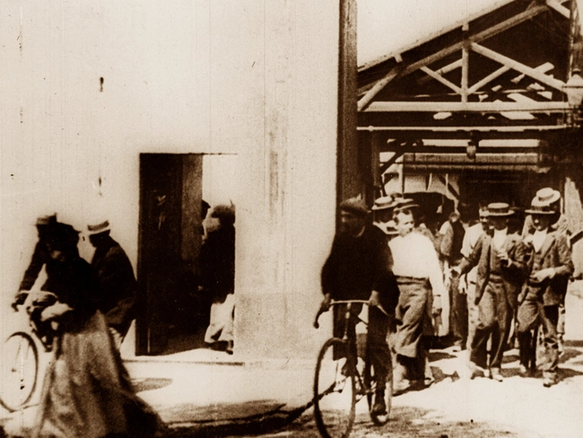 Στις 28 Σεπτεμβρίου 1895, οι Λιμιέρ πακετάρισαν την κινηματογραφική μηχανή τους και ταξίδεψαν στη La Ciotat στα νοτιοδυτικά της Γαλλίας. Στήνοντας πρόχειρα στο L'Eden, τον πρώτο κινηματογράφο στον κόσμο. Οι Λιμιέρ έδειξαν στους περίεργους κατοίκους την εργασία τους - όπως λέγεται ένα μικρό φιλμ που έδειχνε εργάτες να βγαίνουν από το εργοστάσιό, το οποία είχαν τραβήξει εκείνη τη χρονιά.
