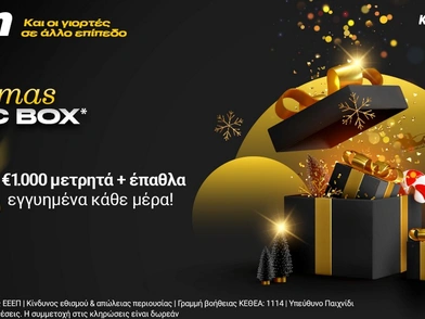 Το “Christmas Magic Box*” ανοίγει στη bwin και «ανεβάζει» τις φετινές γιορτές σε… άλλο επίπεδο. Κάθε μέρα, ένα «μαγικό κουτί» περιμένει να χαρίσει μία έκπληξη σε κάθε εγγεγραμμένο παίκτη, ενώ ταυτόχρονα, όλοι παίρνουν μέρος στην κλήρωση της ημέρας, όπου ένας νικητής κερδίζει €1.000 μετρητά!
