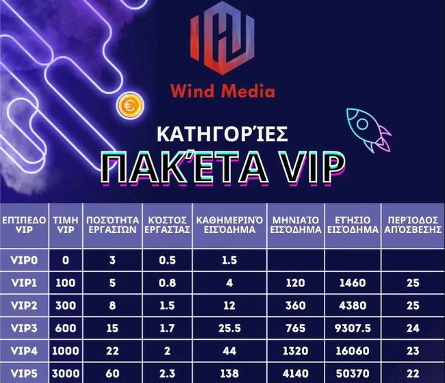Με τη λογική ότι μετά την αρχική επένδυση, οι χρήστες θα είχαν μόνο κέρδη, αλλά και το ότι η Wind Media σημείωνε πως η αρχική απόσβεση γίνεται σε σύντομο χρονικό διάστημα, πάρα πολλοί ήταν αυτοί που πίστεψαν πως θα μπορέσουν να εξασφαλίσουν ένα έξτρα εισόδημα. Μόλις το μέλος έκανε VIP εγγραφή έπρεπε να ολοκληρώσει κάποιες ενέργειες, όπως πχ. να κάνει likes σε κάποια συγκεκριμένα videos.