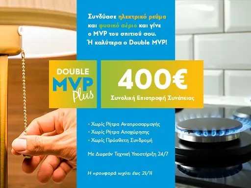 Για να διευκολυνθεί ακόμα περισσότερο η καθημερινότητα και να μην σπαταλάμε πολύτιμο χρόνο σε διαδικαστικές καταστάσεις, το Protergia Double MVP Plus προσφέρει δωρεάν και άμεση τεχνική βοήθεια 7 ημέρες την εβδομάδα (Protergia Home Care) για θέματα σύνδεσης του Φυσικού Αερίου, δωρεάν την εφαρμογή «myprotergia» για τον απόλυτο έλεγχο της κατανάλωσής μας και υψηλού επιπέδου εξυπηρέτηση που τακτοποιεί άμεσα όποιο θέμα προκύψει.