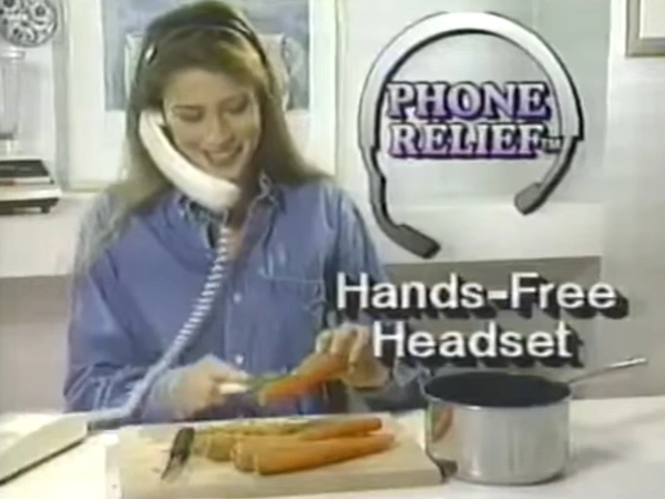 Η αγγελία υποσχόταν πως με αυτό το γκάτζετ θα μπορούσες να κανεις "hands free" το τηλέφωνο σου αμέσως. Ίσως οι αγαθές ψυχές που διαφήμισαν αυτό το προϊόν, πίσω στο 1993, δεν μπορούσαν να φανταστούν πως θα ερχόταν μια εποχή όπου οι άνθρωποι θα περπατούν μόνοι και θα μιλούν με δυνατή φωνή, στο κενό, μέσα από τα λιλιπούτεια hands-free ακουστικά τους. Το hands-free εκείνη την εποχή εξυπηρετούσε πιο απλές ανάγκες, όπως το να μπορείς να ανακατέψεις μια γαβάθα με ένα σκούρο υγρό πράγμα και ταυτόχρονα να μιλήσεις στο τηλέφωνο, ή να κόψεις καρότα και να μην έχουμε δράματα με μαχαίρια και άλλα αιχμηρά αντικείμενα.