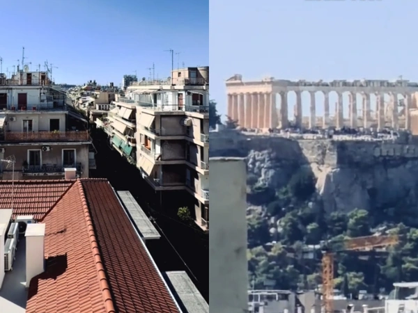 Στη συνέχεια ο TikTokερ κάνει zoom out και τον δείχνει να είναι σε ταράτσα στα βάθη της Αθήνας.