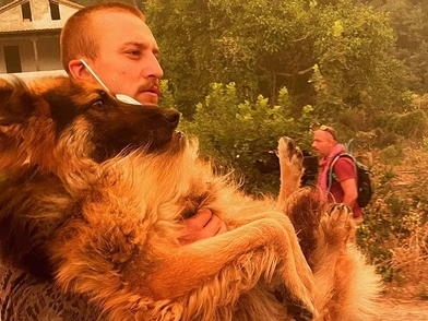 Η προσπάθεια αυτή αποτυπώθηκε σε μια φωτογραφία που έγινε viral στα social media και δείχνει τον νεαρό να έχει πάρει στα χέρια το μεγάλο λυκόσκυλο. Αν δεν υπήρχε ανθρώπινη παρέμβαση, θα είχε σωθεί, όπως πολλά άλλα ζωάκια στα δάση και στα χωριά της Εύβοιας.