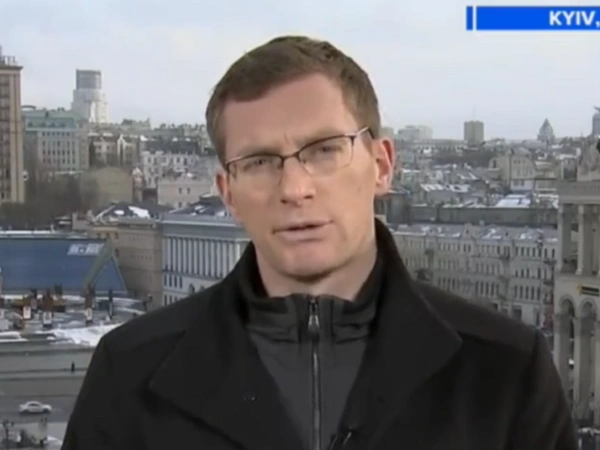 «Υπάρχει ένταση με τις ρωσικές δυνάμεις στην περιοχή του ανατολικού Ντονμπάς εδώ και οκτώ χρόνια. Ωστόσο, παρά το γεγονός ότι η πρωτεύουσα του Κιέβου είναι σχετικά ήρεμη», ακούγεται να αναφέρει στα αγγλικά για το Associated Press, αλλάζοντας όμως γλώσσα για να μεταφέρει τις εξελίξεις και σε άλλους ειδησεογραφικούς οργανισμούς.